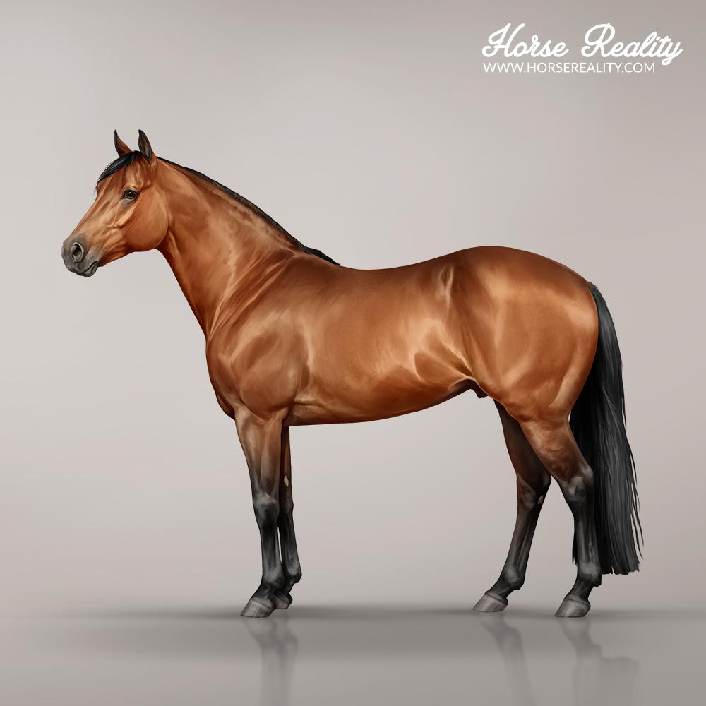 The dominant A-allele restricts black pigment (if present) to the points of the horse, resulting in a bay base color.
