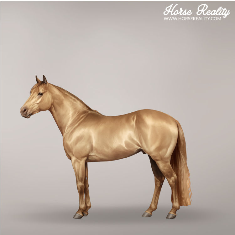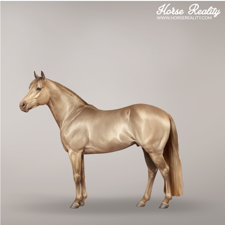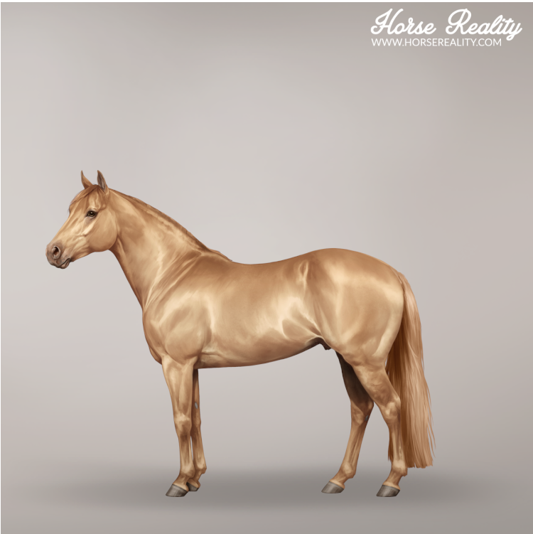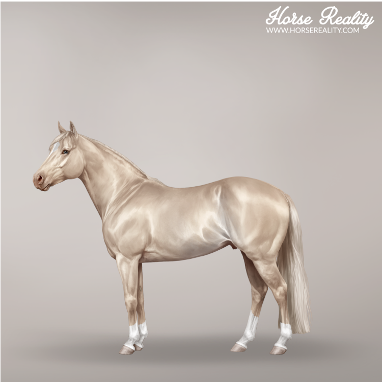 Palomino pearl is a horse color caused by one copy of pearl and one copy of cream on a chestnut base. The coat, mane and tail are a creamy color.